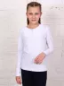 Блузка для девочек младшего и старшего школьного возраста, из трикотажного полотна кулирка с лайкрой. Блузка прилегающего силуэта, с втачным рукавом, с центральной застежкой на спинке на петлю и пуговицу, с воротником из шифона. Спереди отсутствуют линии членения. На спинке вырез в виде капельки под застежку. Рукав одношовный, длинный. Низа рукавов и изделия подогнуты. Воротник состоит из двух частей со складками. Спереди по центру прикреплена брошь.