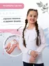 Блузка для девочек младшего школьного возраста, из однотонного трикотажного полотна - однотонная кулирка с лайкрой и шифона. Блузка полуприлегающего силуэта, с рукавом из шифона, без застежки. Спереди жабо со складками из шифона с декоративным элементом по центру. На спинке отсутствуют линии членения. Рукав длинный одношовный, присборенный по окату и низу, на манжете. Низ изделия подогнут. Срез горловины окантован.