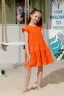 Платье детское, расширенное к низу. Рукав "крылышко". Горловина округлая, сзади завязки. Три яруса платья из тканей компаньонов. Платье из шитья, в состав которого входит 100% хлопок, ткань комфортна и гигроскопична.