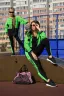 Толстовка прямая, свободная, с капюшоном из сетки, на молнии. Рукав длинный, из сетки, на эластичном манжете. Спинка удлиненная, из сетки. В верхней части полочки расположены кокетки из сетки. На полочку настрочены накладные карманы с клапанами из сетки.