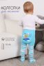 Яркие колготки для малышей. Рисунок в полоску с облачками, сзади вывязаны медвежонок и надпись