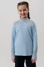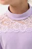 Блузка для девочек младшего и старшего школьного возраста, из трикотажного полотна – однотонная кулирка с лайкрой и кружева (дизайн и ширина кружева может меняться). Блузка прилегающего силуэта, с втачным рукавом, с воротником – стойкой. Спереди отрезная кокетка из кружева. На спинке отсутствуют линии членения. Рукав длинный одношовный. По низу рукава настрочено широкое кружево. Низ изделия подогнут.