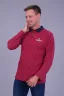 Футболка поло с длинным рукавом, выполнена из ткани лакост пике 50% хлопок, 50% полиэстер. Воротник вязаный приглушенного синего цвета. На полочке планка на трех пуговицах, внутренняя планка в цвет воротника, также на полочке выполнена печать. Футболка поло подойдет для прогулок, отдыха, дома и спорта.