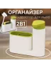 Представленный органайзер с дозатором включает в себя подставку, на которой размещаются ёмкость с диспенсером для жидкого моющего или уходового средства объемом 250 мл и съемный стакан для хранения с двумя отделами. Подойдет для ванной комнаты, для кухни, для бани. Органайзер компактный, но вместительный. В съёмные стаканы легко помещается все необходимое
