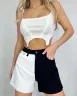 Эти двухцветные джинсы-шорты просто замечательные! Высшая посадка очень удобная для фигуры, качество ткани превосходное – прочная и приятная к телу. Чёрно-белое сочетание выглядит стильно и современно.