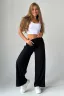 Брюки-палаццо из «лапши» — идеальный выбор для тех, кто ценит комфорт и стиль. Модель выполнена из мягкого эластичного трикотажа с характерной ребристой текстурой («лапша»), которая отлично держит форму и визуально вытягивает силуэт. Свободный, расклёшенный крой в сочетании с высокой или средней посадкой создаёт эффект легкости и движения — брюки выглядят элегантной в то же время невесомо.
