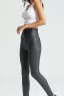 Легинсы из стрейч - кожи, благодаря очень эластичной ткани моделируют силуэт и позволяют создать стильный, актуальный образ. Высокий пояс с декоративными защипами, на молнии, имеет утягивающий эффект. В легинсах можно заниматься спортом, а также, в комплекте с соответствующим верхом, они подойдут для любого мероприятия.