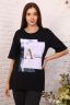 Футболка женская оверсайз. Свободного покроя со спущенными плечами. Горловина округлой формы, по бокам футболки разрезы. На полочке выполнен модный принт. В этой футболке Вы будете выглядеть стильно.