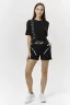 Футболка женская укороченная, свободного силуэта с коротким рукавом, полочка оформлена декоративным элементом: люверсами со шнурком.