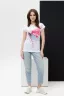 Футболка полуприлегающего силуэта, средней длины, с округлой горловиной. Рукав цельнокроеный, короткий.
