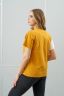Футболка для женщин, прямого силуэта. Рукав втачной, короткий. Горловина округлая. Полочка изделия с асимметричным вертикальным резом и буквенным принтом.