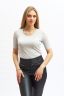 Футболка женская приталенного силуэта, длиной до середины бедра. Вырез горловины - округлый. Рукав втачной, удлиненный.