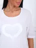 Футболка женская удлиненная с рисунком в виде сердца. Футболка с широким втачным рукавом, что делает его свободным и футболка не сковывает движений. Футболка свободного кроя из натурального дышащего хлопка - прекрасный базовый вариант одежды на любой сезон. Подходит в качестве домашней одежды, одежды на работу и для прогулок.