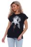 Футболка женская с оригинальным принтом, из хлопковой ткани с лайкрой. Ткань держит форму, не вытягивается, приятная на ощупь. Стильная футболка классического фасона со спущенным рукавом. Посадка свободная. Такая модель подойдет абсолютно всем и станет необходимой вещью в вашем гардеробе.