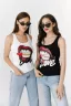 Майка-борцовка прилегающего силуэта, средней длины, с округлой горловиной. Горловина и проймы майки обработаны бейкой из основного полотна.