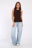 Майку купила себе в коричневом цвете - очень удобная вещь! Материал приятный к телу, нигде не давит и не жмёт. Отлично сидит по фигуре благодаря пройме и горловине, которые аккуратно обработаны.