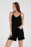 Майка на тонких бретелях, с V-образной горловиной на полочке и спинке. На спинке обработан декоративный вырез со шнуровкой.