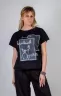 Нарядная футболка на кулиске арт. А2006 выполнена из 100% коттона плотного, премиального качества: материал мягкий и приятный к телу, при этом износостойкий и хорошо держит форму даже после многократных стирок. Особенность модели – кулиска по всей окружности низа, позволяющая регулировать посадку. Благодаря этому приему футболка выглядит элегантно и необычно, отлично подходит для создания как повседневных, так и более нарядных образов. Крой футболки продуман до мелочей: опущенная линия плеча создают свободный, но элегантный силуэт, который легко адаптируется под любую фигуру. Футболка идеально садится благодаря продуманному крою, подчёркивая достоинства и скрывая возможные недостатки. Черный базовый цвет делает модель универсальной и легко сочетаемой с любыми аксессуарами и низом гардероба. Центральный элемент дизайна – абстрактный принт из квадратов с изображением женского лица и выразительными надписями, обрамленный сверкающими стразами. Они добавляют праздничного блеска, подчеркивают художественный характер рисунка и ловят свет при каждом движении. Футболка идеально подойдет для повседневной носки, для походов на работу, вечерних прогулок, встреч с друзьями или модных фотосессий. Уход за изделием прост: деликатная стирка при температуре до 30°С, гладить с изнаночной стороны через тонкую ткань, чтобы сохранить яркость принта и блеск страз. Такая футболка станет ярким акцентом в вашем гардеробе и будет радовать вас качеством, стилем и комфортом каждый день. Следует отметить что чем больше Ваш размер, тем менее будет выражен эффект оверсайз. Рост модели на фото: 168 см, размер: 46-48, на ней футболка L(46-48) размера.