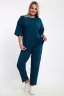 Этот женский костюм из легкого но плотного трикотажа — идеальный выбор для тех, кто ценит сочетание практичности и современного стиля. Модель выполнена из кулирки с лайкрой, что делает ее незаменимой для летних прогулок, отдыха или в качестве стильной домашней одежды. Характеристики изделия: Ткань: Высококачественная кулирка с лайкрой. Натуральный хлопок позволяет коже дышать, а небольшое содержание лайкры обеспечивает отличную эластичность, предотвращает вытяжение коленей и деформацию изделия после стирки. Размерный ряд: Представлен в размерах 48–58, что позволяет подобрать идеальный вариант для любого типа фигуры Детали кроя: Верх (Кофта): Силуэт: Свободный крой (оверсайз) обеспечивает максимальный комфорт и скрывает возможные нюансы фигуры. Рукав: Укороченный или спущенное плечо, что добавляет образу легкости и удобства в движении. Низ (Брюки): Фасон: Брюки свободного или прямого кроя с комфортной посадкой. Функциональность: Модель дополнена удобными глубокими карманами. Пояс: Эластичная резинка мягко фиксирует брюки на талии, не вызывая дискомфорта при длительной носке