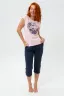 Удобный универсальный костюм для дома и любимой дачи. Бриджи-капри на кокетке со складками, к низу заужены, длина до середины икры. Благодаря наличию в составе 35% полиэстера бриджи не растянутся на коленях. Футболка украшена полноцветной печатью, поэтому ягоды кажутся натуральными. Горловина - лодочка. Очень удобный крой. Оттенок ткани бриджей может отличаться от представленного на фото.