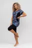 Женский костюм полуприлегающего силуэта состоит из туники и бриджей. 100% дышащий хлопок туники и эластичные бриджи несут в себе удобство при носке, гигроскопичность и износостойкость. V-образный вырез горловины придаёт изделию женственный вид. Для удобства туника имеет вместительные накладные карманы и втачные рукава с манжетами. Рельефы на полочке изделия создают идеальную посадку и безупречный внешний вид. Бриджи на резинке с высокой посадкой. В костюме такого плана Вы будете чувствовать себя комфортно как дома, так и на любимой даче. Эта двойка идеально подойдет для летнего отдыха на даче, на море или просто для девушек, которые хотят чувствовать себя уютно и комфортно дома. Летний женский костюм подходит для поездок и путешествий, загородного отдыха на природе, а также для получения лечения в больнице или санатории. Повседневное хлопковое изделие с бриджами - отличная идея для подарка любимой жене, маме, сестре или подруге на день рождения, 8 Марта или по любому другому приятному поводу. Рекомендация: для того чтобы продлить яркую жизнь Вашему костюму для дома и отдыха из хлопка, стирку производить при температуре не выше 30 градусов, а во избежание деформации изделия не прибегать к ручному отжиму (не перекручивать), утюжить слегка недосушенное изделие утюгом на паровом режиме. Покупайте наши красивые и удобные домашние костюмы с бриджами и носите с удовольствием! Приятных покупок!