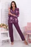 Женский костюм-пижама, состоящий из рубашки и брюк. Комплект сшит из трикотажного полотна нового поколения с цифровой печатью, которая не меняет цвет рисунка в процессе стирки. Содержание полиэстера в ткани позволяет изделию не менять свою форму в процессе носки и практически не мнется. Усадка костюма минимальна. Жакет-рубашка на пуговицах, воротник в английском стиле из ткани компаньона. Рукав 3/4, низ с имитацией манжета. Брюки на широкой резинке, низ брюк выполнен с имитацией манжета. Широкий размерный ряд с 44 по 56, большой ассортимент ярких расцветок на любой вкус. Можно носить, как домашний костюм и как пижаму. Рубашка свободного кроя для удобства домашнего ношения. Любителям носить в обтяжку рекомендуется брать на размер меньше (см. параметры в сантиметрах). Рекомендована стирка при 30-40 градусах в стиральной машине. Отличный подарок любимым женщинам.