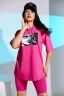 Костюм женский - футболка свободного кроя и облегающие бриджи выполнен из кулирки с лайкрой. Спереди на футболке оригинальный принт. Горловина обработана бейкой, низ изделия и рукав подшиты. Костюм очень удобный и приятный к телу, идеально подойдет как для дома, так и для прогулок и отдыха.