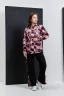 Костюм состоит из рубашки и брюк. Рубашка на кнопках, с отложным воротником, с накладными карманами, с фигурной линией низа. Рукав длинный, на манжете, с застежкой на кнопки. Спинка с кокеткой. Брюки прямые, на поясе, с боковыми карманами, с лампасами из отделочного полотна вдоль боковых швов. В нижней части лампасов обработаны разрезы.