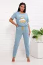 Пижама женская: футболка прямого кроя, с короткими рукавами, с милейшим принтом на полочке, брюки с боковыми карманами (крой "Бананы"), укороченные, на эластичном поясе декоративный шнурок.