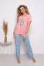 Пижама женская Попкорн : брюки классические прямые с карманами, футболка с коротким рукавом и с принтом на полочке.