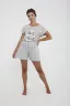 Комплект с шортами и футболкой. Футболка не приталенного силуэта, рукав реглан с манжетом, на полочке декоративная печать в стиле шелкографии с добавлением глитерра. Шорты на резинке без карманов.