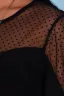 Платье женское - горловина круглая под окантовку, по груди и рукавам сетка в горошек, рукав 3/4 на манжете. Платье с рельефом по переду, длина до середины колена, по спинке шов. На модели 50 размер. Аксессуары в комплект не входят