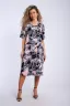 Платье свободного прямого кроя, рукав короткий, два боковых кармана. Яркий геометрический рисунок.