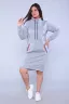 Платье женское комбинированное из футера прямого силуэта. Длинный рукав ма манжете, воротник стойка на шнуровке через люверсы. На передней полочке внутренние карманы с отделкой. Теплое и удобное.