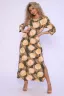 Длинное платье полуприлегающего силуэта с рукавами длиной 3/4 на манжетах и со сборкой. В боковых швах два длинных разреза и удобные карманы.