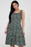 Сарафан женский из кулирки. Сарафан состоит из кокетки, которая застегивается на планку. Юбка изделия состоит из двух ярусов. Горловина и пройма изделия окантована.