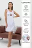 Сорочка женская из кулирного полотна, прямого кроя, горловина круглая, низ обработан на плоскошовной машине, на полочке принт. Натуральный состав обеспечит вам комфорт. Изделие идеально подходит для повседневного использования, легкий уход. Цвет окантовки может отличаться