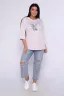 Туника из натурального хлопка прекрасный вариант для повседневного образа. Оригинальный принт с использованием глиттера украшает модель, придавая ей изысканный вид. Обработка деталей вкруговую с закрепкой, рукав длиной 3/4, горловина втачная из основной ткани. Большие размеры.