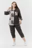 Туника женская прямого силуэта с отложным воротником. Застежка на петли-пуговицы. Рукав втачной, длина 3/4 с манжетой и хлястом. Низ туники фигурный, спинка несколько длиннее полочки. На полочке нагрудный карман.