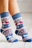 Здоровье человека идёт от ног, поэтому важно держать ноги в тепле не только зимой, но и межсезонье. Теплые вязаные носки с натуральной шерстью в составе согреют и подарят ощущение комфорта. Зимние носки мягкие и неколючие. Они плотно облегают ногу, но резинка не давит, удобны на каждый день, сохраняют яркость цвета и первоначальную форму после многочисленных стирок. Носки долговечны, они будут согревать вас несколько зимних сезонов. Шерстяные носки станут спасением в самые сильные морозы. Ногам будет комфортно даже при температуре до -40°С. Шерсть имеет уникальную способность быстро согревать и длительное время поддерживать правильную терморегуляцию. Она хорошо пропускает воздух и позволяет коже дышать. Также быстро отводит влагу, оставаясь при этом сухой. Шерстяные носки отлично тянутся, благодаря чему не сковывают движений. Благодаря полиамидным нитям имеют повышенную прочность изделия от истираний и разрывов, что значительно увеличивает продолжительность их службы. Шерстяные носки достаточно плотные, при этом мягкие, не раздражают, не вызывают зуда и не колются. Имеют широкую резинку и связаны с учетом анатомической формы ступни и голеностопа. В составе натуральной шерсти находятся природные соединения и ланолин, обладающие антисептическим эффектом. Это позволяет им оставаться свежими даже после нескольких дней ношения. Носочки с очаровательным зимним рисунком идеально подойдут для уютной новогодней фотосессии, для себя или в подарок близким на Новый год и другие праздники. Теплые носки станут прекрасной покупкой на зимний сезон. Подходят для занятия спортом: под коньки, лыжные и треккинговые ботинки. Они согревающие, поэтому незаменимы для рыбалки, охоты или во время прогулок на свежем воздухе. Теплые вязаные носки будут отличным подарком маме, бабушке, жене, подруге или коллеге. Особенно оценят данный подарок пожилые бабушки в холодные осенние и зимние вечера на даче или дома, кто имеет малоподвижную работу или часто находится на сквозняках.